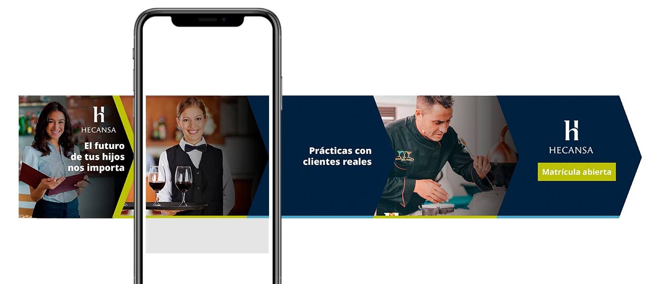 Campañas integrales de banners y remarketing en varias fases para generar preinscripciones al inicio de cada curso escolar. Campañas para target alumnos potenciales y campañas diferenciadas para padres.