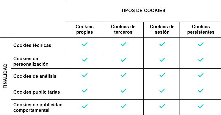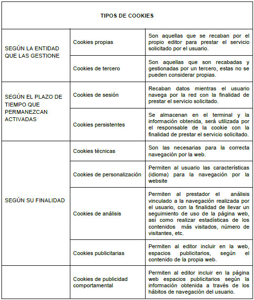 La información que le proporcionamos a continuación, le ayudará a comprender los diferentes tipos de cookies: