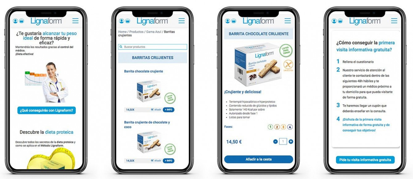 Desarrollo de la tienda online con dos tipos de productos, unos de venta abierta para todo el público y una amplia gama de productos que requieren prescripción médica actualizada (por tiempo y número de compras). Esas prescipciones se gestionan también online y están coordinadas con Cal Center.