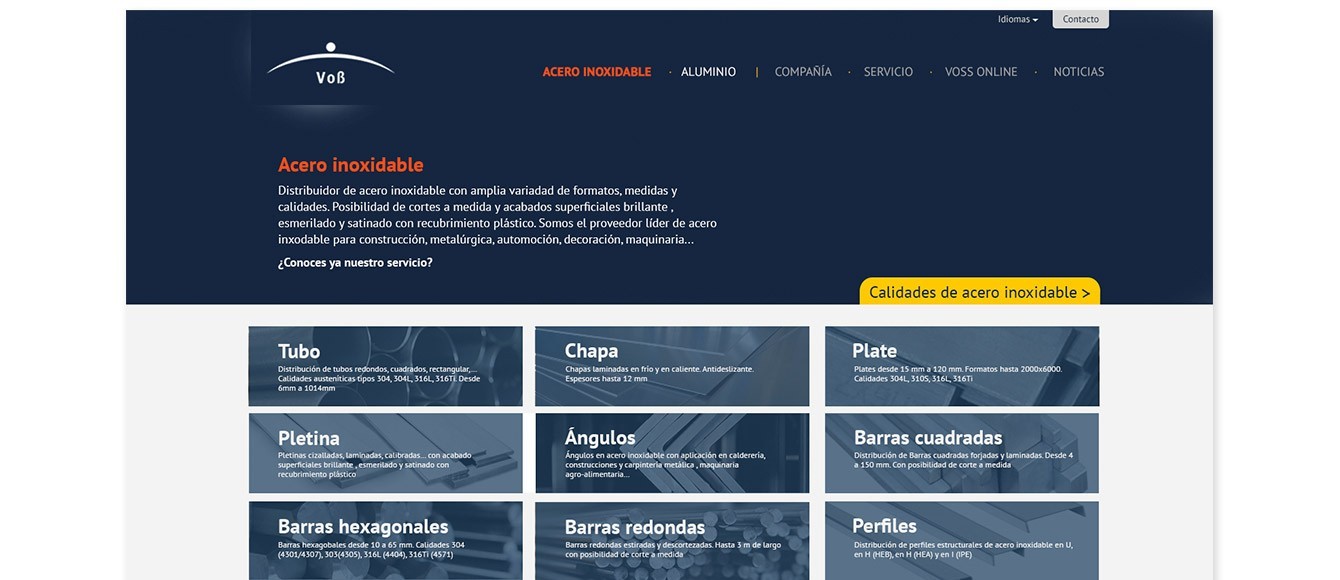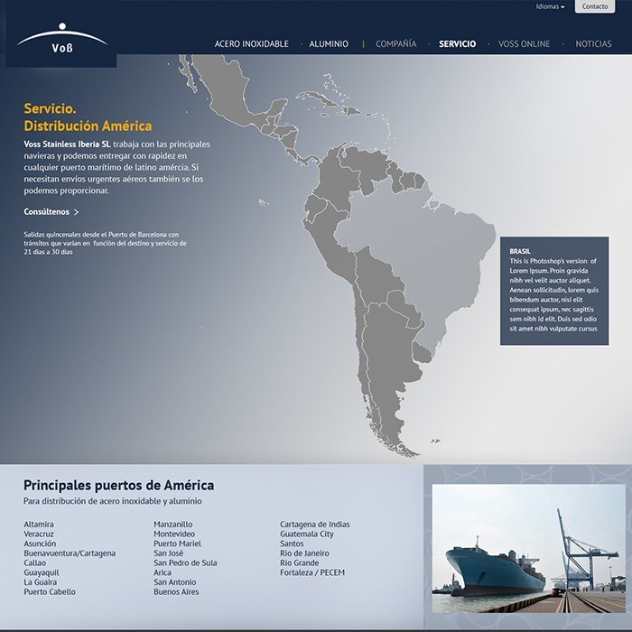 Diseño muy cuidado para destacar de todos los competidores internacionales sin olvidar la usabilidad y facilidad de sus clientes para describir el amplio catálogo de productos. Programación a medida.